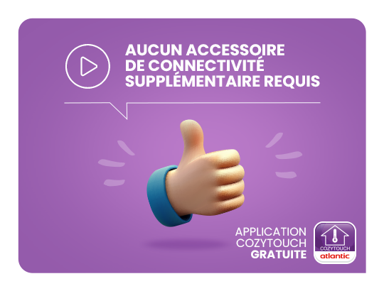 (1) Pour connecter Doris WiFi, vous devez : disposer d'une connexion internet dans votre foyer et d'une connexion mobile sur smartphone, et télécharger l'app gratuite Atlantic Copzytouch sur ce même smartphone.