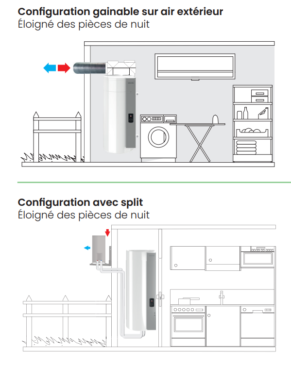 Enfin, afin de garder un confort acoustique optimal, nous vous conseillons de privilégier une installation dans un local acoustique. Pour toute autre question liée à l’installation, nous vous conseillons de vous rapprocher de votre installateur qui sera le mieux placé pour vous conseiller en tenant compte des paramètres de votre logement et de votre installation.