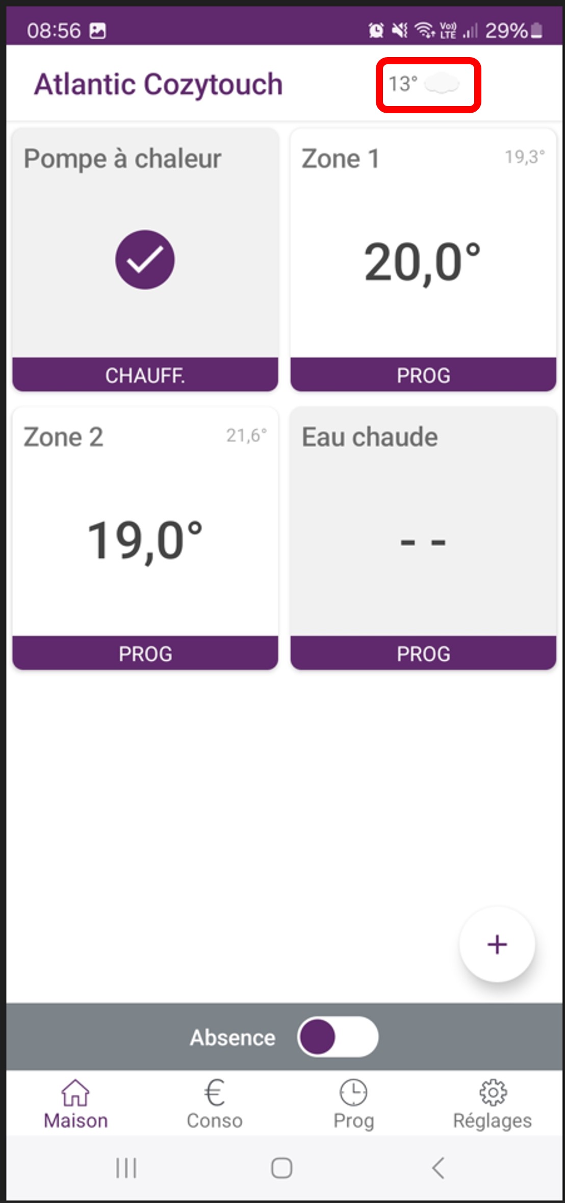 Application Atlantic Cozytouch : affichage de la température extérieure en temps réel
