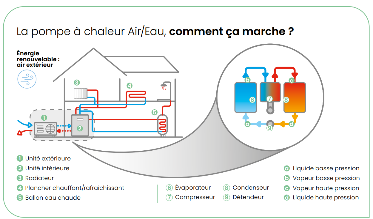 Le fonctionnement de la pompe à chaleur air/eau (aérothermie)