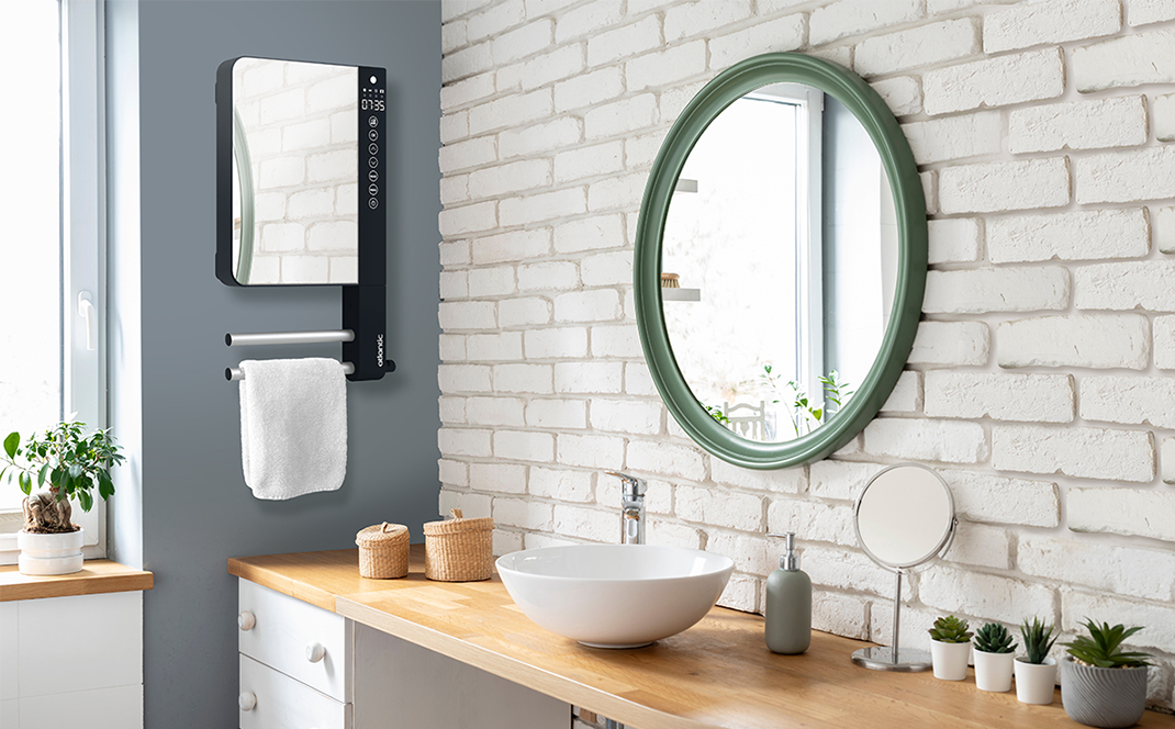 Ce sèche-serviettes électrique soufflant est petit, mais très bien équipé en fonctionnalités ! Il est idéal dans les petits espaces avec son format compact de 34.5cm de largeur seulement ; et est pratique avec son boîter de commande tactile avec touches tactiles à accès direct, et sa version avec miroir et 2 barres de portage.